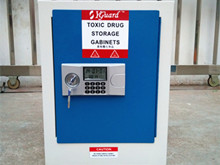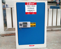 劇毒藥品柜帶電子密碼鎖+機(jī)械鎖,帶防盜報(bào)警功能,雙鎖兩人管理,開門時需兩人同時在場,符合易制毒化學(xué)品儲存管理要求。